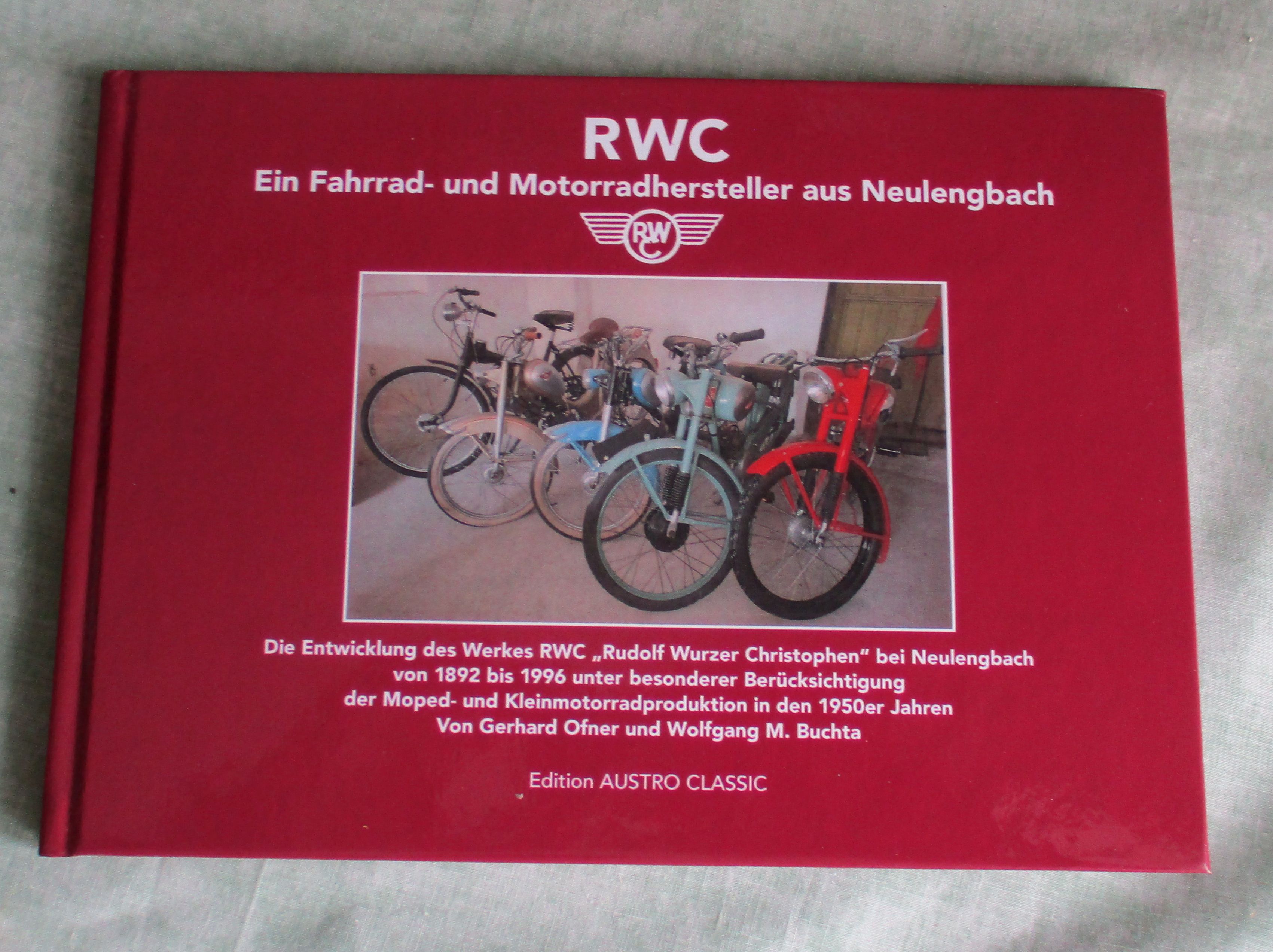 Auto + Motorrad Ofner, Gerhard – Buchta, Wolfgang M. RWC ein Fahrrad- und Motorradhersteller aus Neulengbach. Dei Entwickllung des Werkes RWC „Rudolf Wurzer Christophen“ bei Neulengbach von 1892 bis 1996 unter besonderer Berücksichtigung der Moped- und Kleinmotorradproduktion in der 1950er Jahren. Kierling. Edition Austro Classic. 2025. 80 Seiten, durchgehend illustriert. Hardcover.