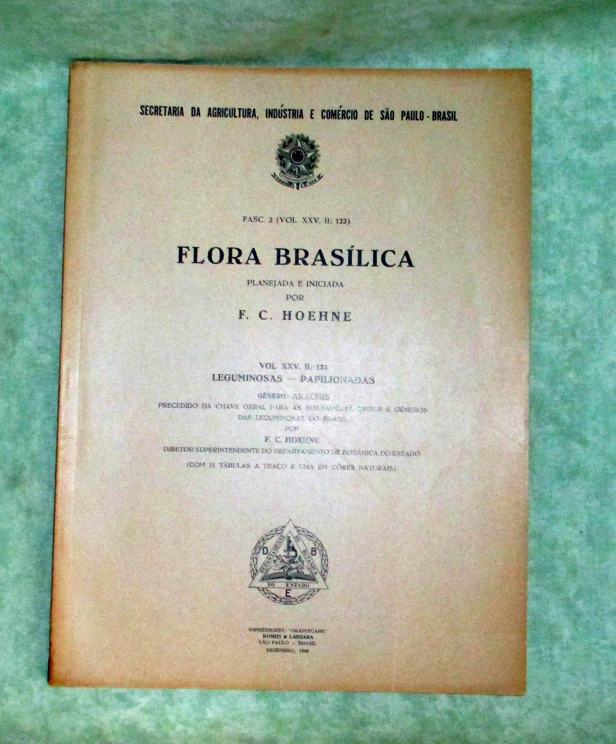 Botanik + Gartenbau Hoehne, F.C. Flora Brasilica. Leguminosas – Papilionadas. 3 vols. Sao Paulo. 1940-1941. -4°. 159 p. 162 tables Soft cover. Flora Brasilica. Planejada e iniciada por F.C. Höhne. Fasc. 2, 3, 4. Leguminosas – Papilionadas – Genera: Arachis – Machaerium – Paramachaerium – Dalbergia e Cyclolobium