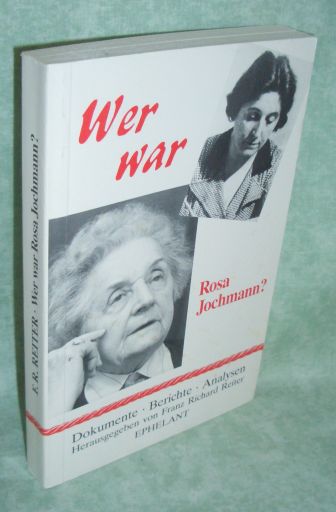 Österreich – Geschichte – Zeitgeschichte Reiter, Franz Richard [Hrsg.]: Wer war Rosa Jochmann? Dokumente – Berichte – Analysen. Wien. Ephelant-Verlag. 1997. 21 cm. 205 Seiten. kart. Dokumente, Berichte, Analysen ; 9. Rund vierzig Autoren legen Zeugnis ab, berichten und analysieren.