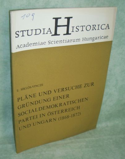 Österreich – Geschichte – Zeitgeschichte Siklós-Vincze, E.. Pläne und Versuche zur Gründung einer socialdemokratischen Partei in Österreich und Ungarn. 1868 – 1872. Budapest Akadémiai Kiadó. 1975. 24 cm. 44 Seiten. Im unteren Drittel leicht wasserwellig. Studia historica Academiae Scientiarum Hungaricae ; 109.