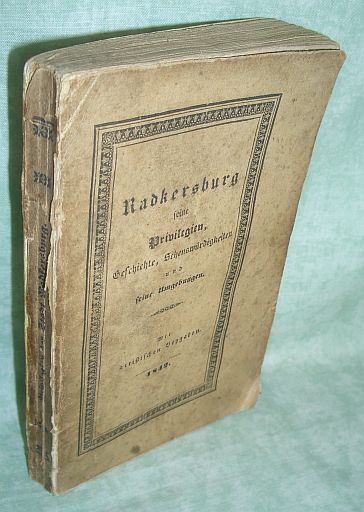 Steiermark – Orts- und Landeskunde (Hofrichter, Joseph Carl). Die Privilegien der kaiserl. königl. landesfürstlichen Stadt Radkersburg in Untersteyer, nebst einer kurzgefaßten Geschichte und Beschreibung dieser Stadt, ihrer Merkwürdigkeiten und Umgebungen. Rakersburg. Weitzinger. 1842. 11 x 18 cm. VIII. 168 Seiten. 6 Tafeln, 2 Pläne. OKart. Einband gebräunt und fleckig, innen schwach stockfleckig, insgesamt in gutem Zustand Inhalt: 1. Die Prvilegien der Stadt Radkersburg (Nach chronologischer Ordnung zusammengestellt). 2. Entwurf zu einer Geschichte der landesfürstl. Stadt Radkersburg. 3. Entwurf zu einer Geschichte der landesfürstl. Stadt Radkersburg und ihrer Merkwürdigkeiten. 4.Die Umgebungen von Radkersburg. (Historisch-topographische Skizzen.)“ behandelt die Ortschaften der Umgebung. ( Die Tafeln zeigen Radkersburg, Oberradkersburg, Halbenrain, Prentl und Freudenau. Pläne: 1. Radkersburg und Umgebung. 2. Rundschau vom Pöllischberge bei Radkersburg.)