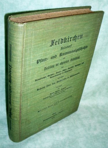 Steiermark – Orts- und Landeskunde Joherl, Ignaz Heinrich. Feldkirchen, Kalsdorf. Pfarr- und Kommunalgeschichte mit Darstellung der allgemeinen Entwicklung des Verwaltungs-, Gerichts-, Steuer-, Schul-, Sanitäts-, Verkehrs und Gewerbewesens in Steiermark mit einem Anhang über das Geldwesen in Steiermark. Graz. Styria. 1905. XII. 588 Seiten, 19 Illustr., eine Karte. Originalleinen mit marmoriertem Schnitt. Widmung des Verfassers am Titel. Sehr gutes Ex.!