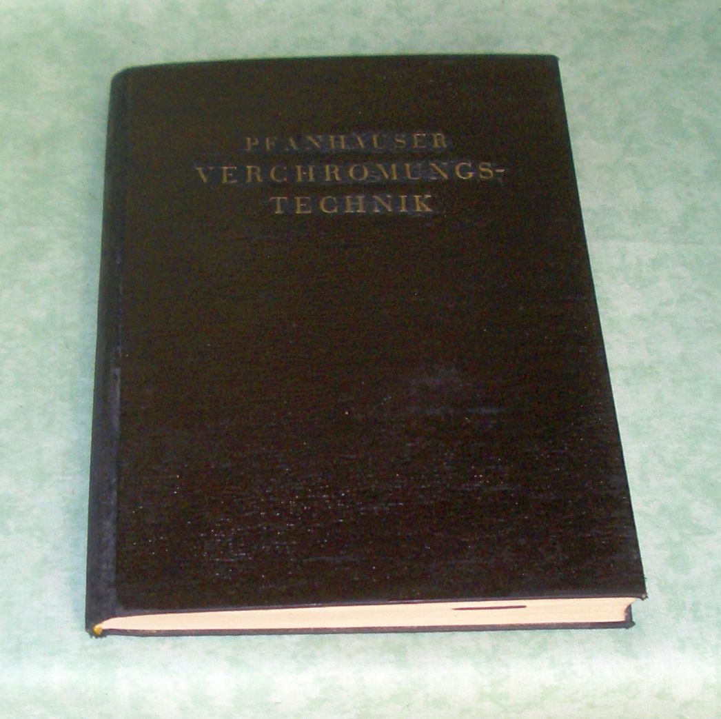 Chemische Technologie Pfanhauser, Wilhelm. Verchromungs-Technik. umfassende Darstellung des heutigen Standes des elektrolytischen Verchromungs-Verfahrens. 2. Aufl. Leipzig. Richter. 1931. 8. 229 Seiten, 103 Textabb. Einbandstark fleckig, innen absolut sauber und anmerkungs- und anstreichungsfrei.
