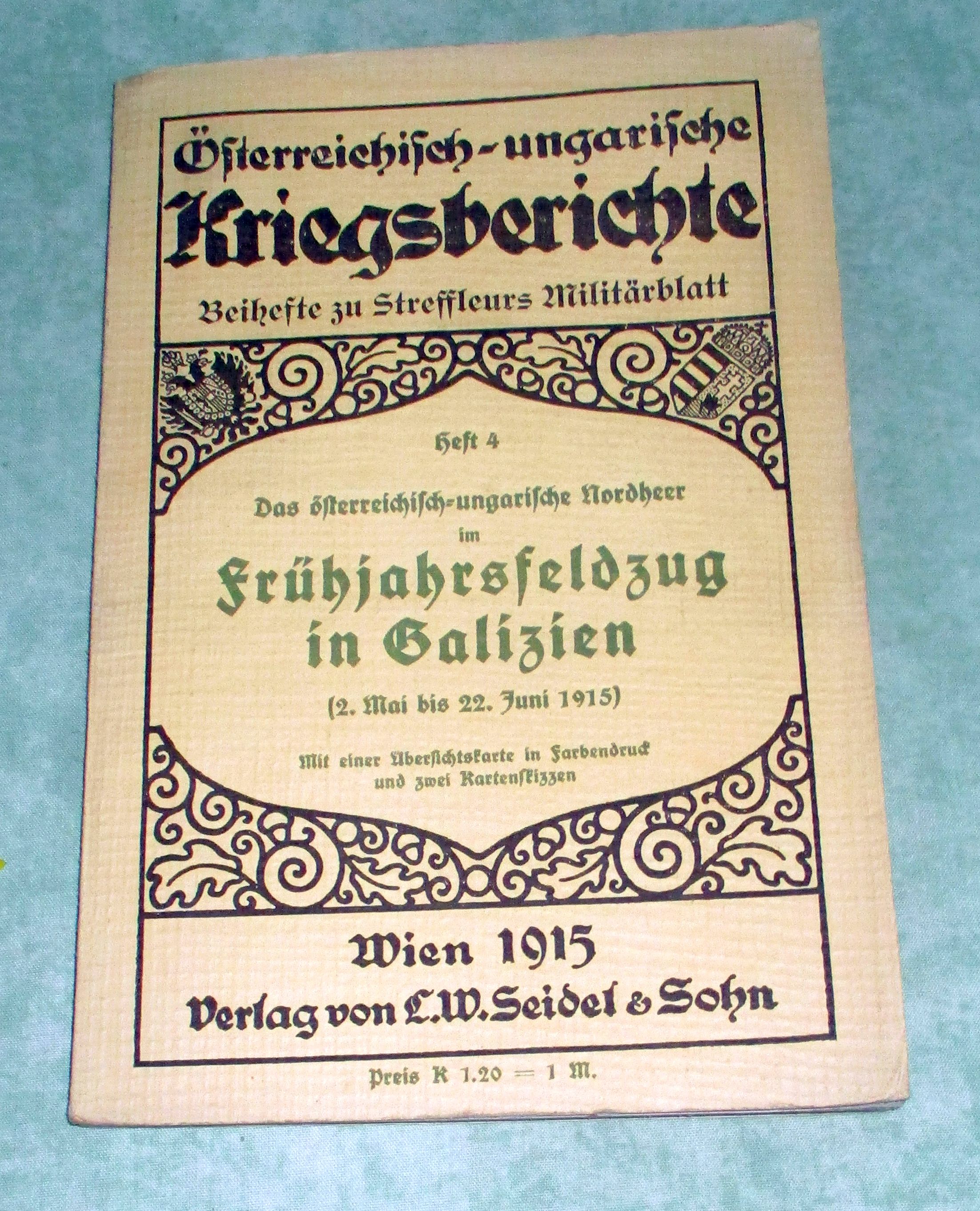 Österr. Heeres- + Marinegeschichte Das österreichisch-ungarische Nordheer im Frühjahresfeldzug in Galizien (2. Mai bis 22. Juni 1915) Wien. Seidel & Sohn. 1915. 62 Seiten, mit einer Übersichtskarte und zwei Kartenskizzen. kart. Österreichisch-ungarische Kriegsberichte Heft 4.