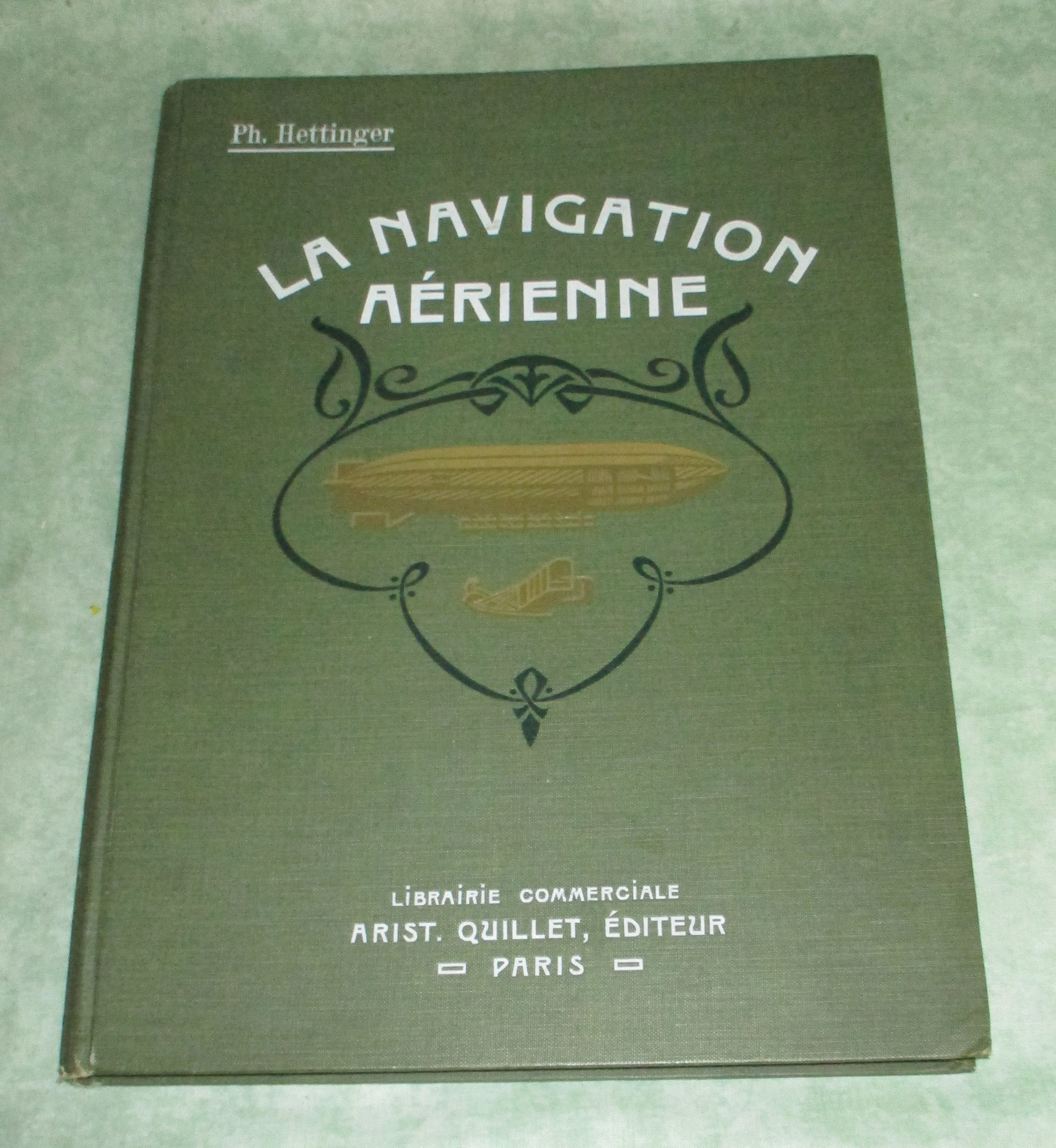 Luft- + Raumfahrt Hettinger La Navigation Aérinne. Paris. Librairie commerciale Aristide Quillet éditeur. 1910. 71 Seiten, 3 farbige Tafeln (Les Aéronats – d’un ballon dirigeable du systeme du Comte de la Vaulx – L’Aeroplane Wright – L’Aeroplane Voisin) mit 6 beweglichen Modellen. 35 Fotografien. Originalleinen. In sehr gutem Zustand.