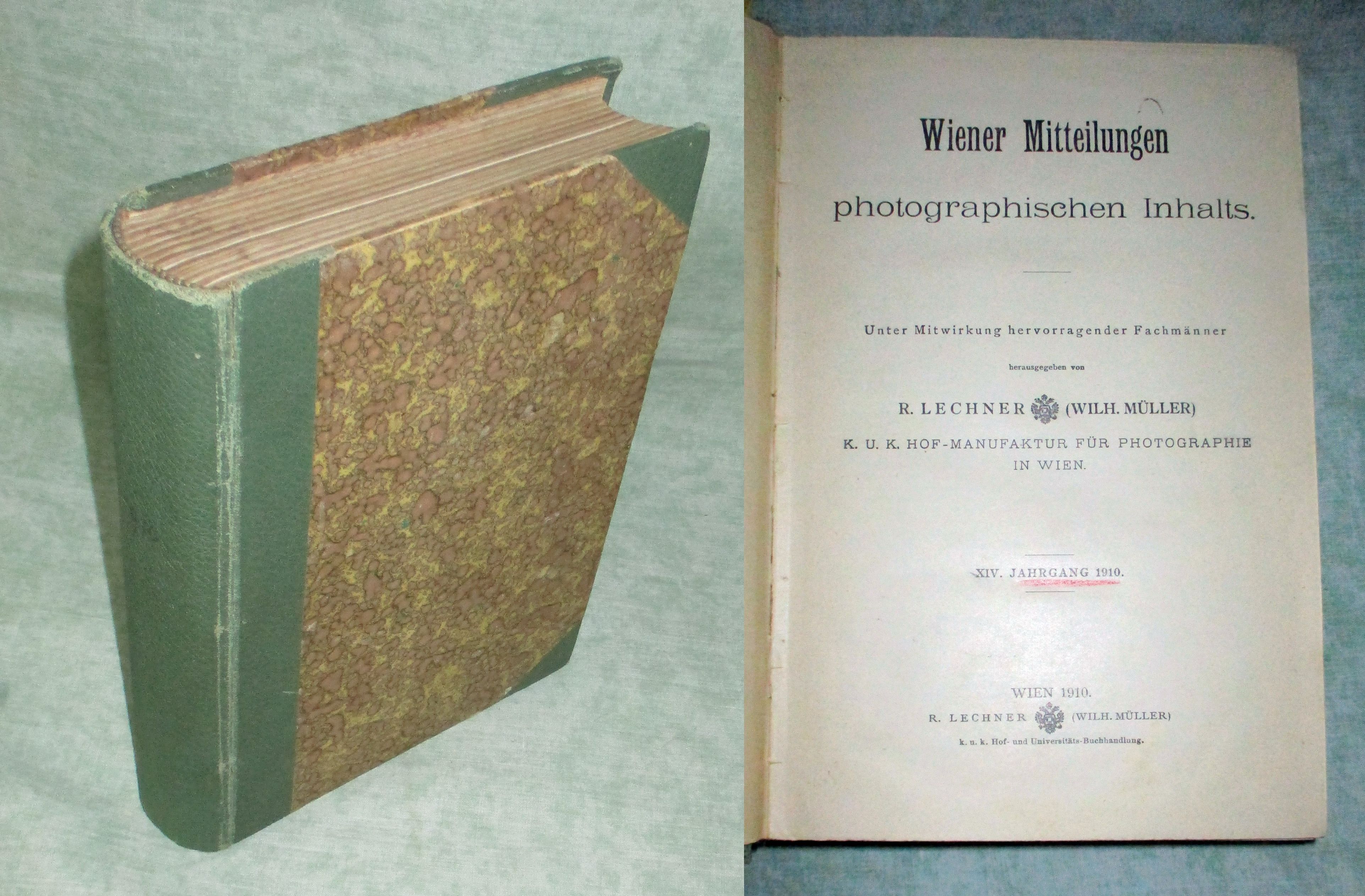 Fotografie Wiener Mitteilungen photographischen Inhalts. XIV. Jahrgang 1910. Wien. 600 Seiten, zahlr. Abb. Halbleinen. Altes Exlibris am Innendeckel. Insgesamt ein gutes Ex.