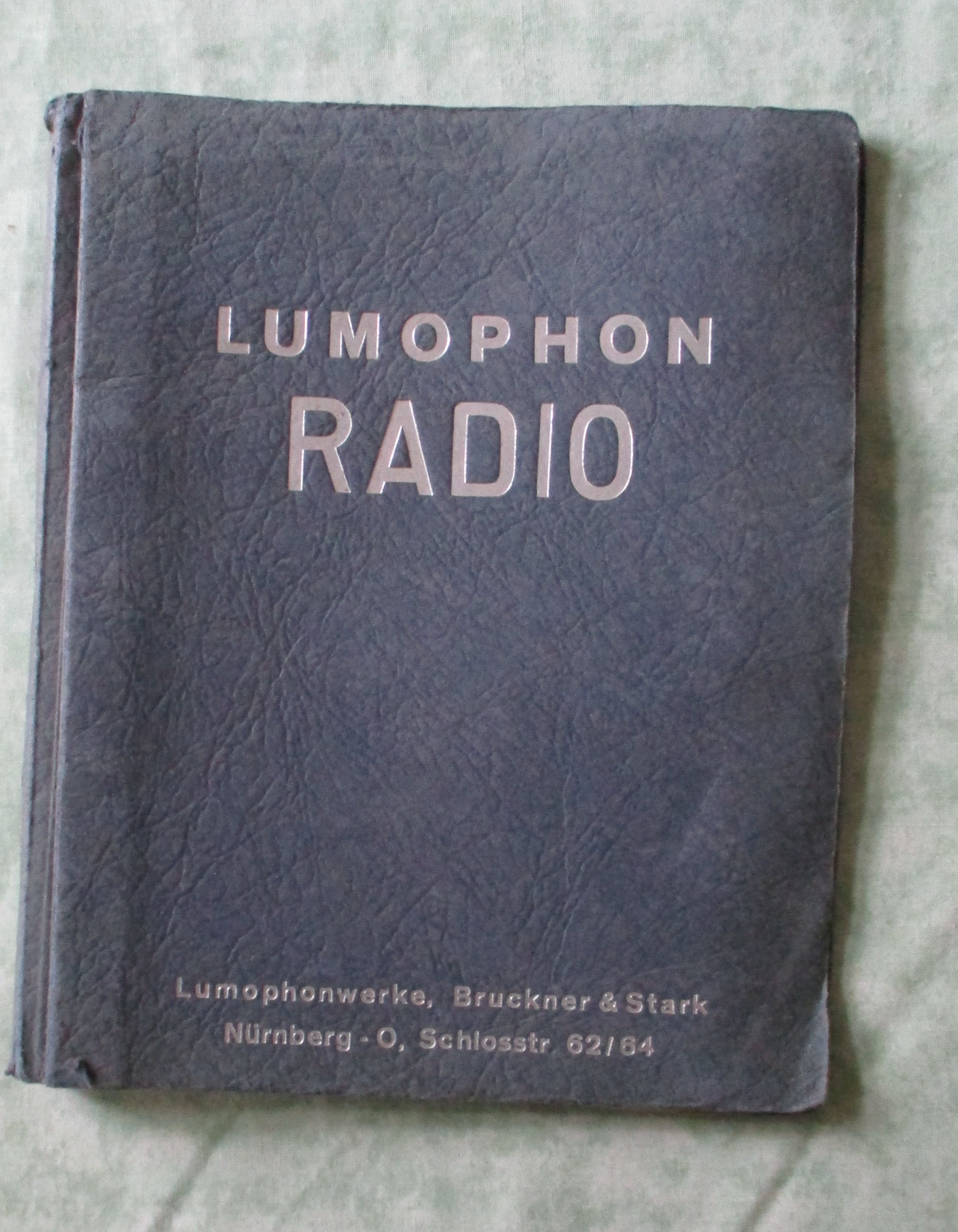 Nachrichtentechnik – Radio – Fernsehen Lumophonwerke, Bruckner & Stark. Lumophon Radio Klemmhebelmappe mit techn. Beschreibungen und Schaltplänen von 8 Modellen (WD 216, WD 327,WD 328, WD 468, WD 219, WD 469, WD 569, WD 489) Nürnberg. 1936-39