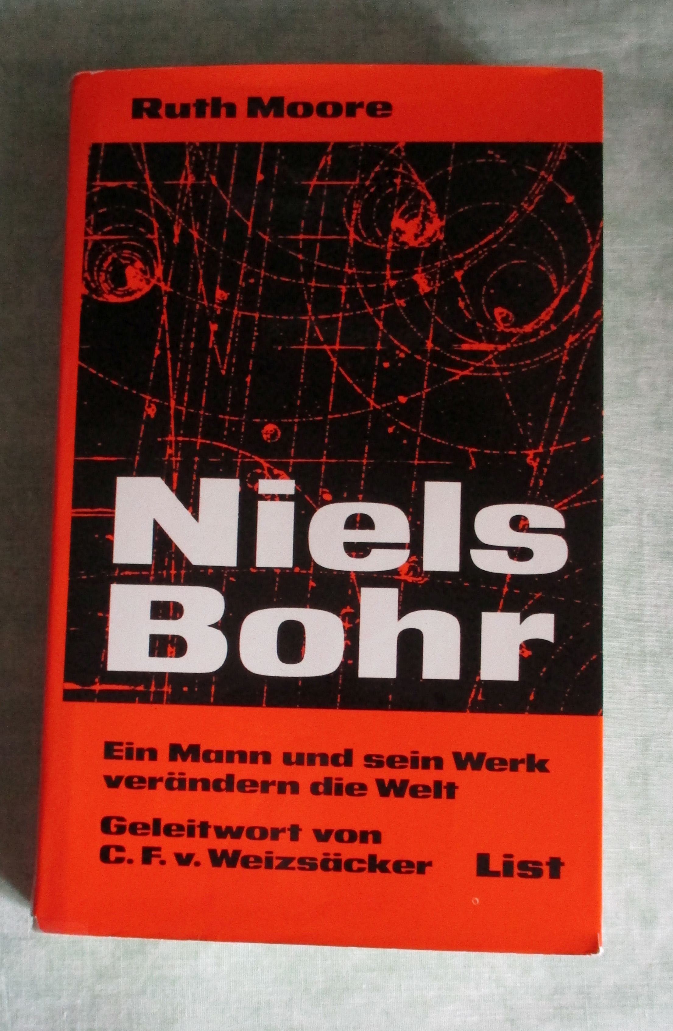 Naturwissenschaften – Chemie – Physik -Mathematik Moore, Ruth. Niels Bohr. Ein Mann und Sein Werk verändern die Welt. 1970. Paul List. 1970. 423 Seiten, kart. mit Schutzumschlag. Auf zahlreichen Seiten Bleistiftunterstreichungen. Aus der Bibliothek des Schweizer Wissenschaftshistorikers Heinz Balmer.