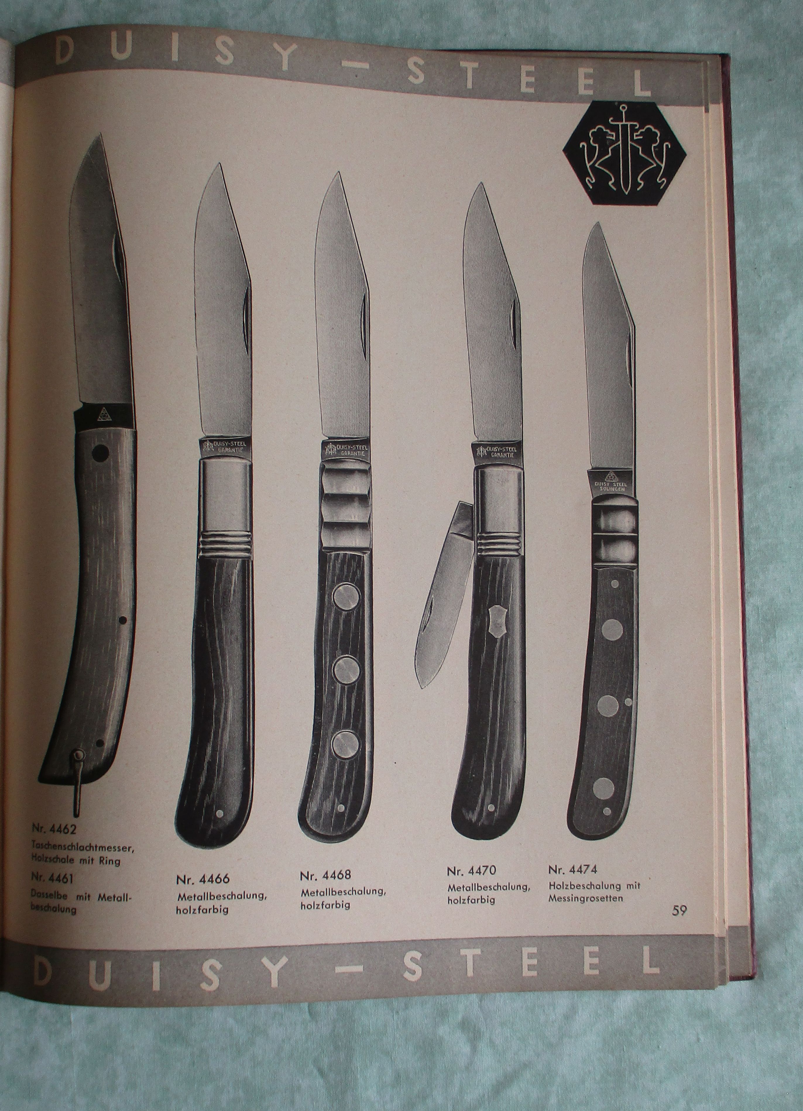 Firmengeschichte + Firmenkataloge C. Duisberg Stahlwarengrosshandlungen. Wien Vi., Mariahilferstraße 3. Auszugliste des Zentrallagers. Wien. 1936. 128 Seiten, durchgehend illustriert. Kunstleinen mit goldgepr. Titel. 1881 – Der gebürtige Solinger Carl Duisberg gründet die Einzelpersonenfirma C. Duisberg und übernimmt bereits erste Exklusiv-Vertretungen von Schlittschuheisen, Taschenmessern-, Scheren und Rasiermessern. 1926 Die 2. Generation: Carl Friedrich Duisberg übernimmt die Firma seines Vaters. Er erweitert das Angebot um Haarschneidemaschinen und Bestecke. Bald erstreckte sich die Belieferung mit Solinger Stahlwaren über das gesamte Gebiet der Donaumonarchie. 1921-1938 Die 2. Expansion: Gründung der Schwertloewen Stahlwarenfabrik in Solingen, sowie Niederlassungen in Budapest, Prag und Rumänien. Eröffnung des neue Geschäftslokal in der Mariahilfer Straße 3, in Wien.