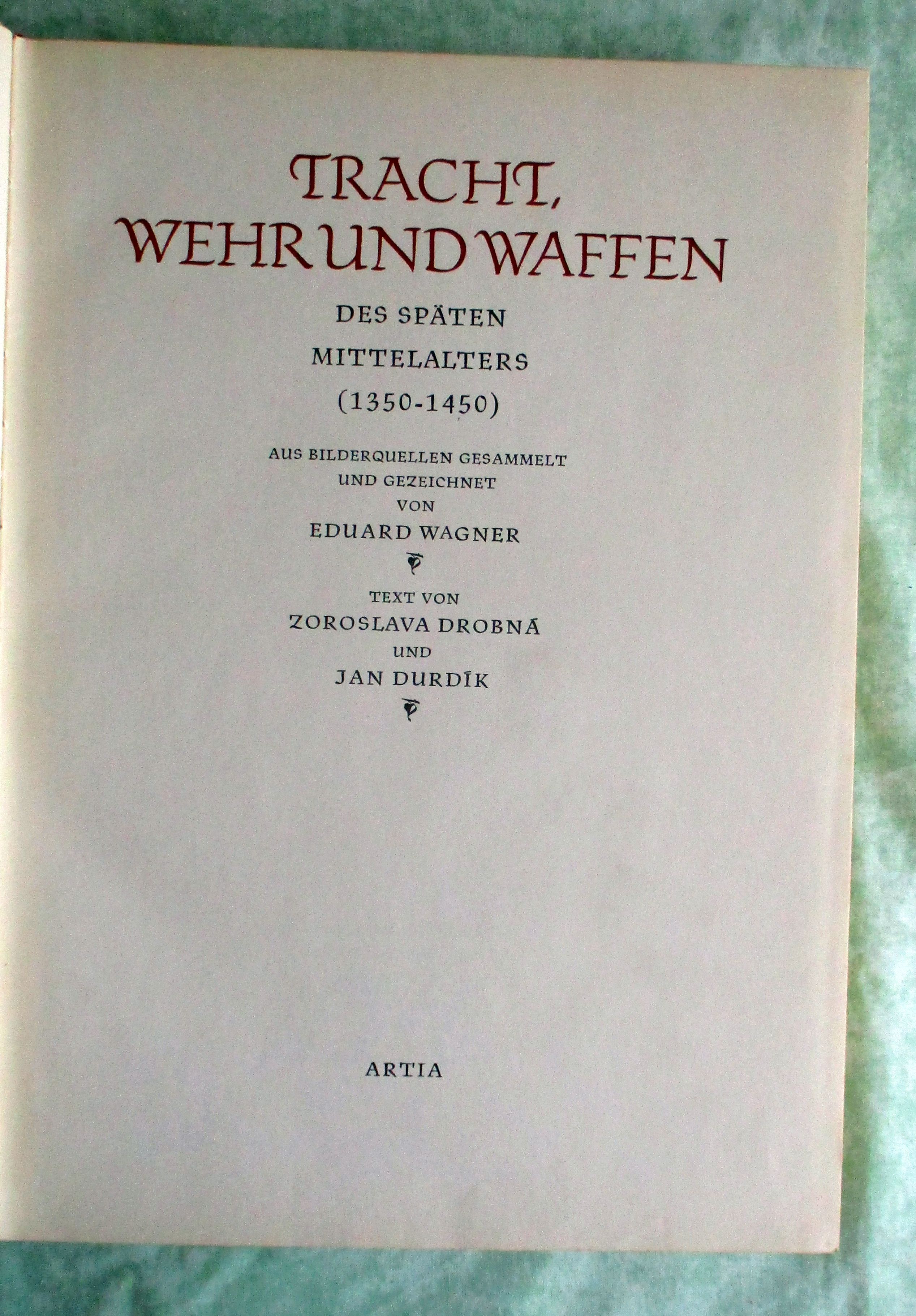 Geschichte + Zeitgeschichte Drobná, Zoroslava. Tracht, Wehr und Waffen des späten Mittelalters (1350 – 1450). 2. Aufl. Praha. Artia. 1960. 73 Seiten Text, 383 zum Teil farbige Tafeln. Leinen. Ein gutes Ex.!