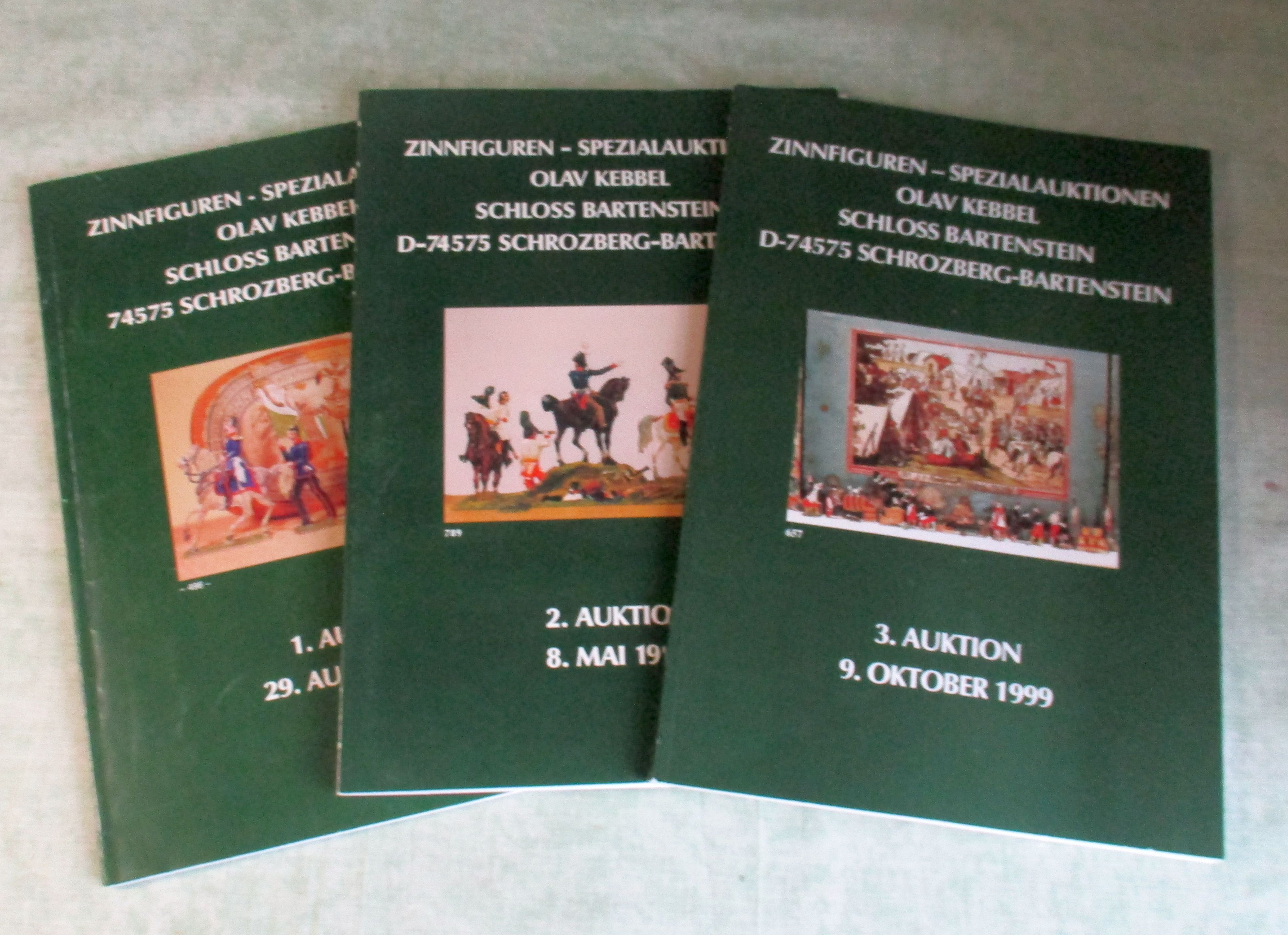 Varia Zinnfiguren – Spezialauktionen Olav Klebbel Schloss Bartenstein. 1., 2., 3. Auktion. 1998 – 1999. 3 Auktionskataloge.