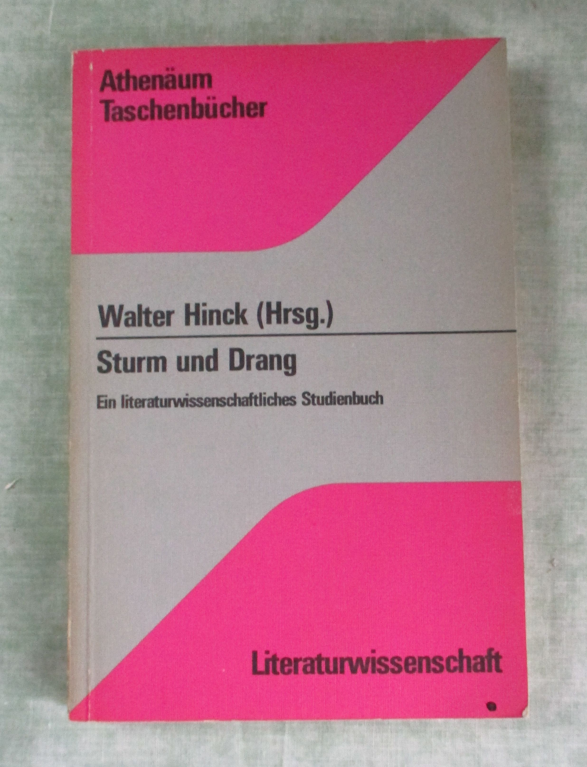 Literatur Hinck, Walter (Hrsg.): Sturm und Drang. Ein literaturwissenschaftliches Studienbuch. Kronberg/Ts. Athenäum-Verlag. 1978. 19 cm. XII, 269 Seiten. Paperback. Mit leichten Gebrauchsspuren. Athenäum-Taschenbücher, 2133 : Literaturwiss.