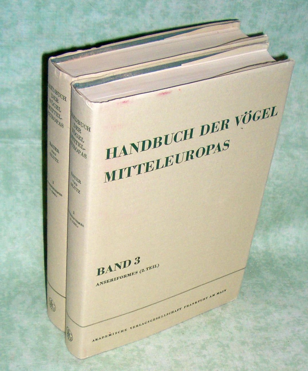 Ornithologie – Vogelkunde Handbuch der Vögel Mitteleuropas. Bd. 2 und 3: Anseriformes. Bearb. von Kurt Bauer und Urs N. Glutz von Blotzheim. Frankfurt/Main. Akademische Vlgsges. 1968/1969. 503.534 Seiten, 153 Abb., 2 Farbtafeln. Leinen mit Schutzumschlag. Gute Ex.