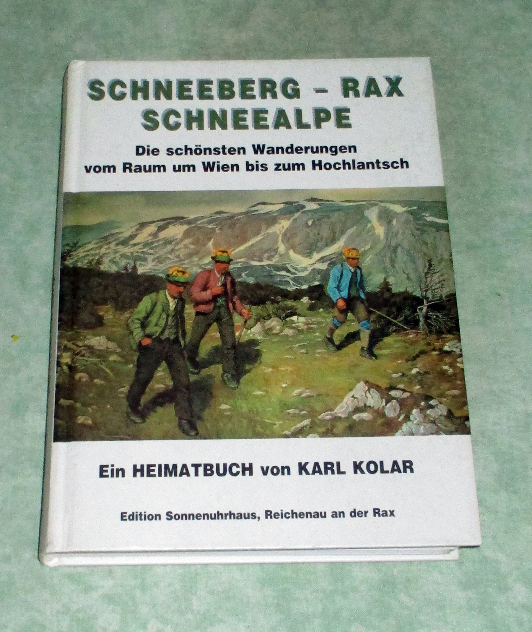 Niederösterreich – Orts- und Landeskunde Kolar, Karl. Schneeberg – Rax – Schneealpe. ein Heimatbuch ; [Wanderungen vom Raum um Wien bis zum Hochlantsch ; das Schicksal der Landschaft und die Sehnsucht nach der unberührten Natur]. 3., erg. und aktualisierte Aufl. Unterweitersdorf, Edition Sonnenuhrhaus, 1999. 8°. 456 Seiten, zahlr. z. Tl. farbige Abb. Fest gebunden. Gutes Ex.