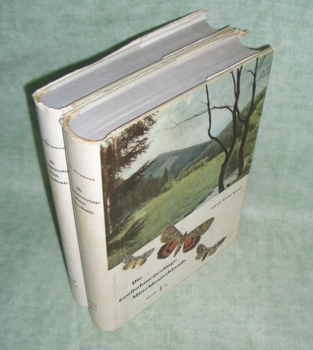 Lepidoptera – Schmetterlinge Bergmann, Arno. Die Großschmetterlinge Mitteldeutschlands. Unter besonderer Berücksichtigung der Formenbildung, der Vegetation und der Lebensgemeinschaften in Thüringen sowie der Verflechtung mit der Fauna Europas. Nach eigenen Beobachtungen und Versuchen sowie mit Verwendung von Beiträgen von Professor Dr. Arthur Petry und zahreichen thüringischen Entomologen. Bd. 4/1und 2. Eulen. Verbreitung, Formen und Lebensgemeinschaften. 2 Bände. Jena. Urania-Verlag. 1954. XII. 1060 Seiten, 773 Textabb., 184 s/w, 17 Farbtafeln. Halbleinen.. Schutzumschläg mit Gebrauchsspuren. Gesamt gesehen sehr gute Ex.