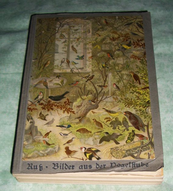 Stubenvögel-, Geflügel-, und Taubenliteratur Ruß, Karl. Bilder aus der Vogelstube. Schilderungen aus dem Leben fremdländischer und einheimischer Stubenvögel 2. Auflage. Magdeburg. Creutz’sche Verlagsbuchhandlung. O.J. (Um 1880) 404 Seiten, 4 Tafeln. Kart. mit montiertem Titelbild. Vordere Einbanddecke am unteren Rand leicht knickspurig, sonst gutes Ex. Selten!