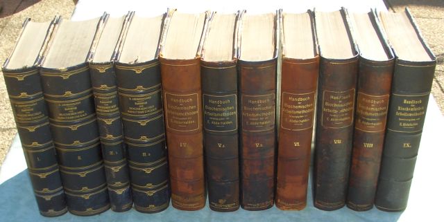 Biowissenschaften + Naturschutz Abderhalden, E. Handbuch der Biochemischen Arbeitsmethoden 9 Bände in 11 gebunden. Wien. Urban & Schwarzenberg Halbleinen der Zeit (z.Tl unterschiedlich gebunden) Kanten und Ecken bestossen, innen sauber und fleckenfrei! exBibliotheksex. mit den obligaten Stempeln. Komplett selten!