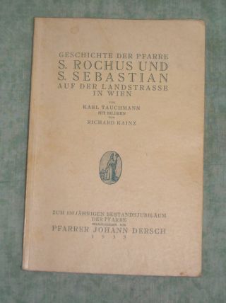 Wien – Landeskunde Tauchmann, Karl / Kainz, Richard. Geschichte der Pfarre S. Rochus und S. Sebastian auf der Landstrasse in Wien. Zum 150jährigen Bestandsjubiläum der Pfarre hrsg. von Pfarrer Johann Dersch. 1933. 103 Seiten, zahlr. Abb. im Text und auf Tafeln. OKart. Einband min. fleckig, insgesamt gutes Ex.