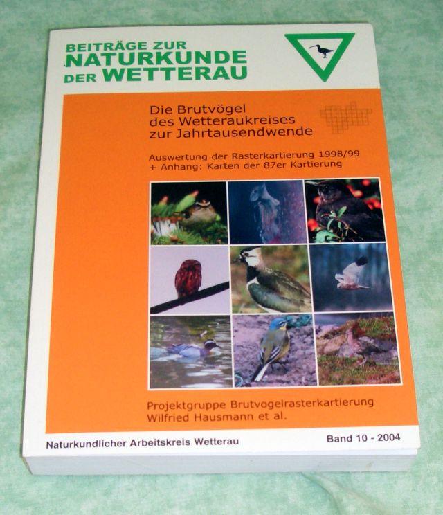 Ornithologie – Vogelkunde Hausmann, Wilfried et al. Die Brutvögel des Wetteraukreises zur Jahrtausenwende. Auswertung der Rasterkartierung 1998/99 + Anhang: Karten der 87er Kartierung. 407 Seiten, zahlr. Verbreitungskarten. Paperback. Naturkundlicher Arbeitskreis Wetterau. Band 10 – 2004.
