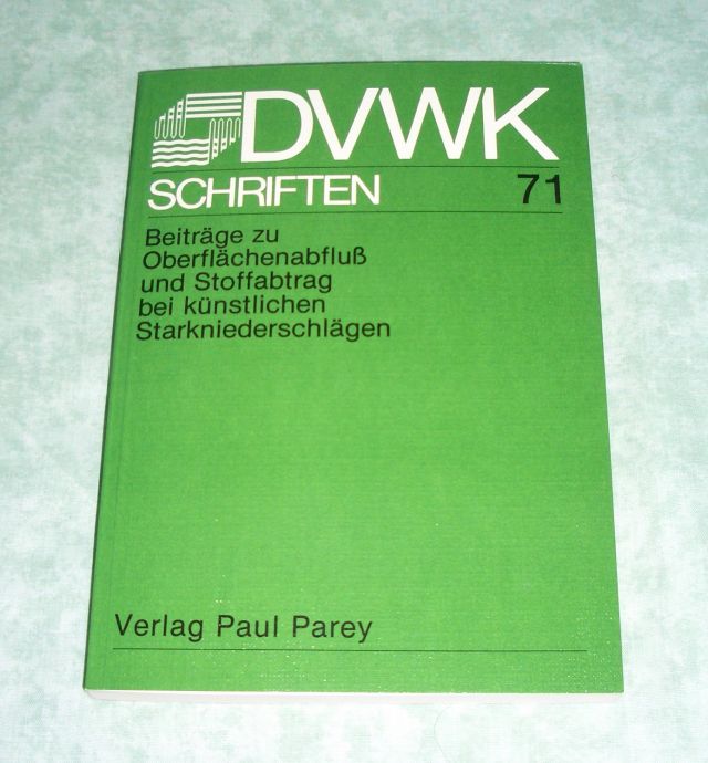 Architektur + Bauwesen Beiträge zu Oberflächenabfluß und Stoffabtrag bei künstlichen Starkniederschlägen. Hamburg [u.a.], Parey. 1985. XXXI, 260 S. Ill., graph. Darst. Kart. Schriftenreihe des Deutschen Verbandes für Wasserwirtschaft und Kulturbau e.V Bd. 71.