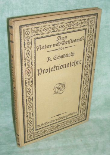 Naturwissenschaften – Chemie – Physik -Mathematik Schudeisky, Albrecht: Projektionslehre. Die rechtwinklige Parallelprojektion u. ihre Anwendung auf d. Darstellung techn. Gebilde nebsteinem Anhang über die schiefwinkelige Parallelprojektion in kurzer, leicht faßlicher Behandlung für Selbstunterricht und Schulgebrauch. Leipzig/Berlin, Teubner, 1918. 8. V, 83 Seite., Mit 208 Abb. Originalleinen. Exbibliotheksex. Aus dem Besitz d. Schweizer Wissenschaftshistorikers E. A. Fellmann. Aus Natur und Geisteswelt ; Bdch. 564.