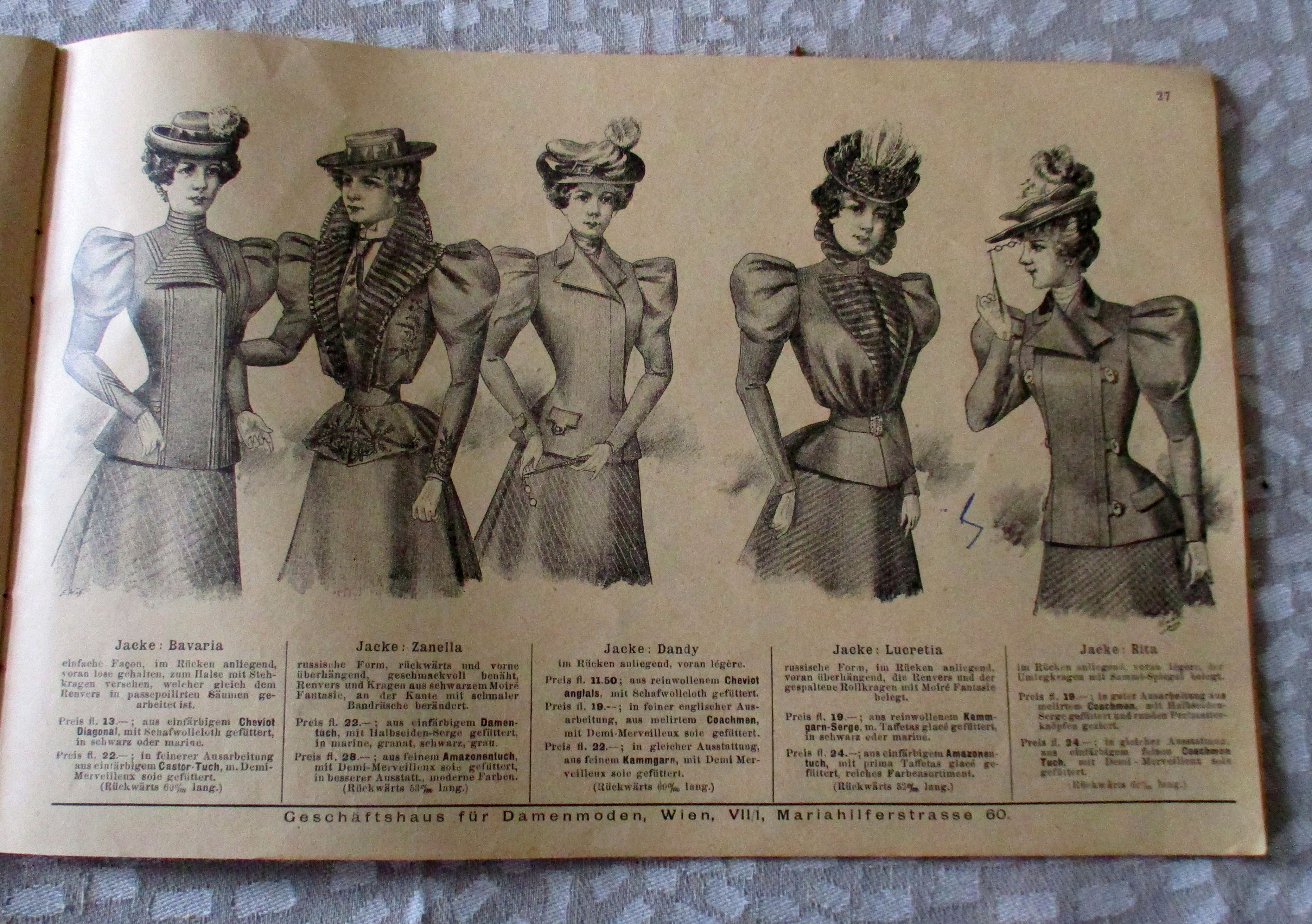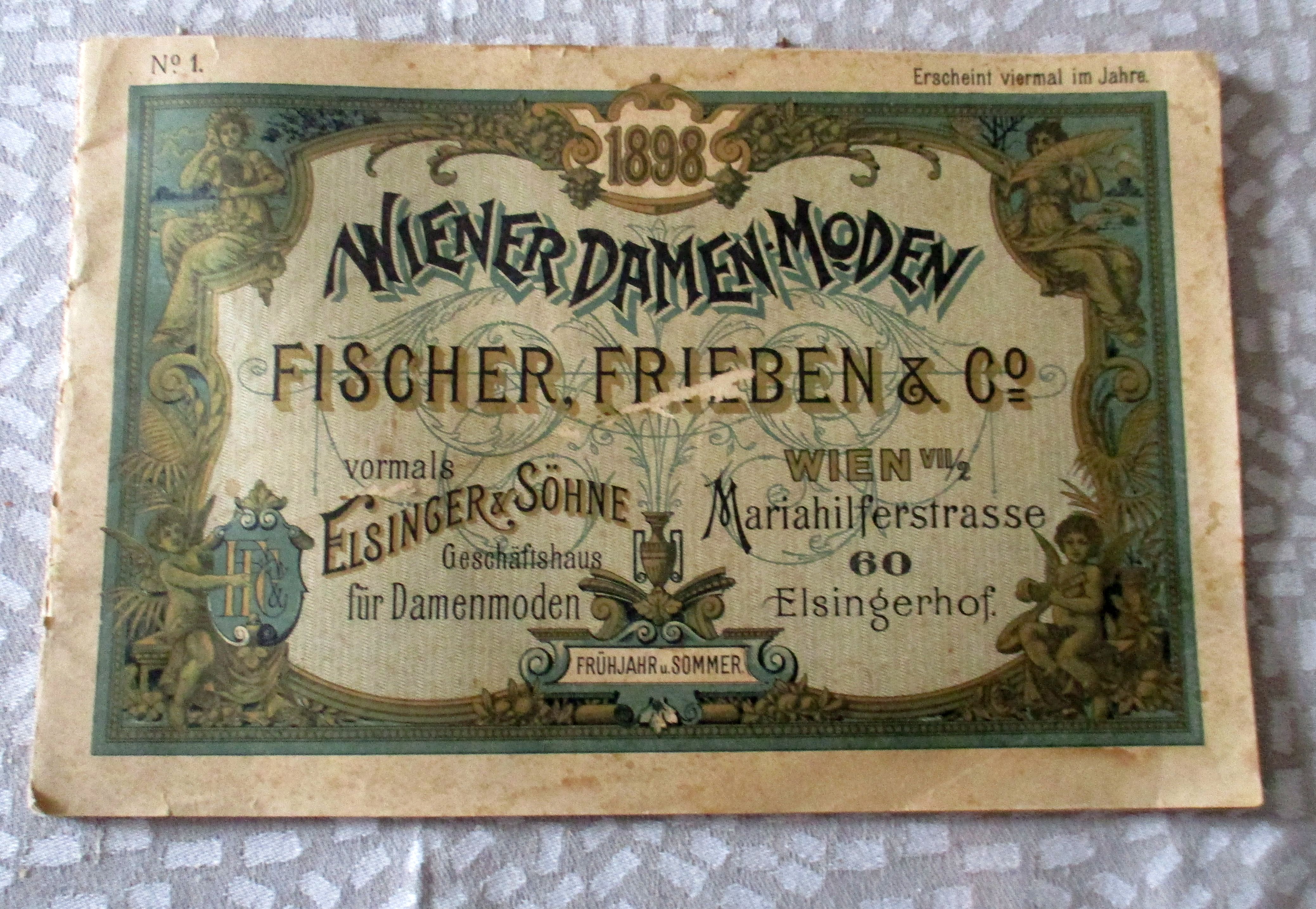 Firmengeschichte + Firmenkataloge Fischer, Frieben & Co. vormals Eisinger & Söhne – Geschäftshaus für Damenmoden. Wien Vii, Mariahilferstrassr 60 – Eisingerhof, Wiener Damen-Moden – Frühjahr und Sommer. 1898. 19,4 x 29 cm. 40 Seiten, Einband geringfügig fleckig. Insgesamt in gutem Zustand.