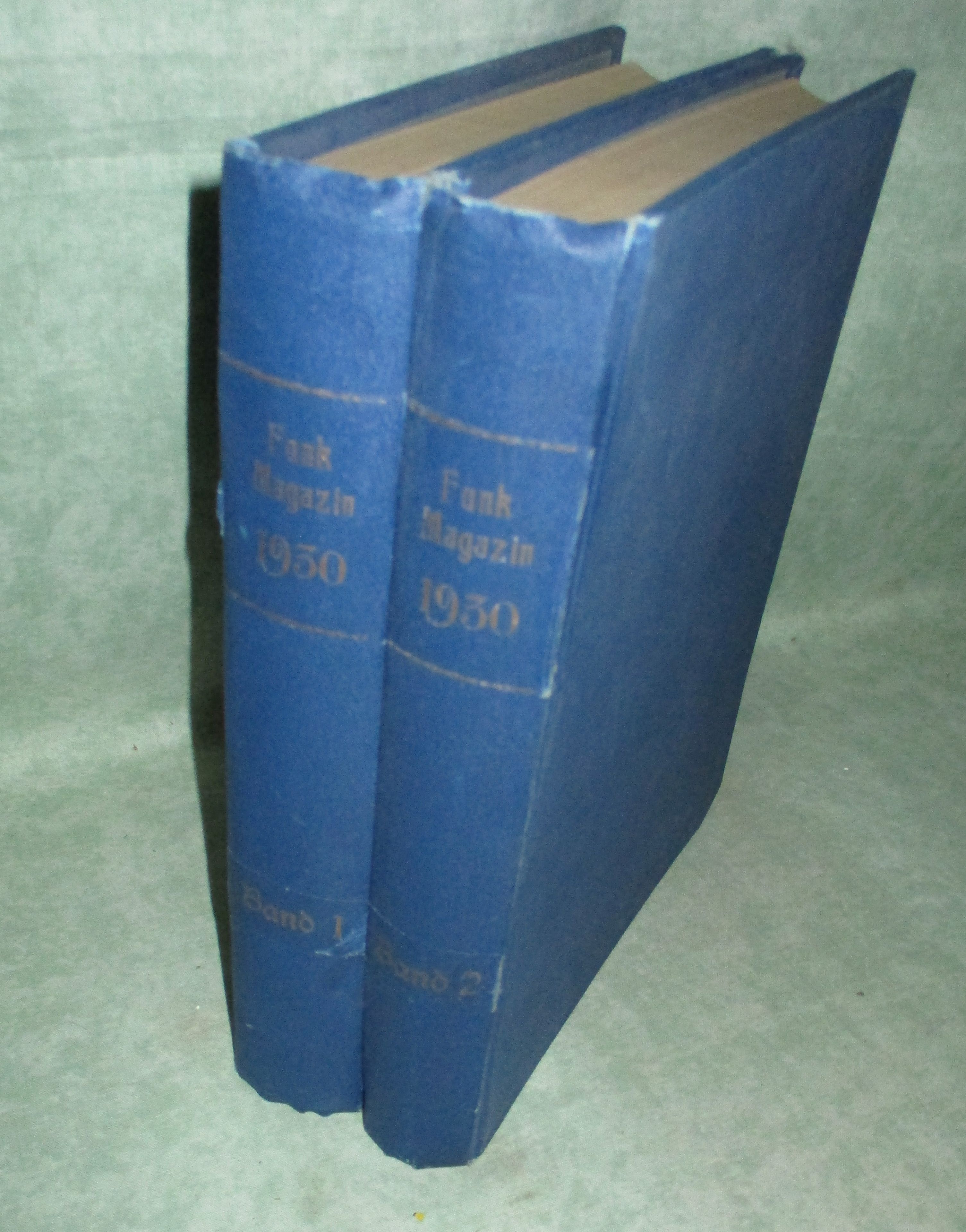 Nachrichtentechnik – Radio – Fernsehen Funkmagazin. Monatsschrift für Radioamateure. Schriftleiter: Dr. Eugen Nesper.Jg. 1930 (kompletter Jahrgang) in 2 Bänden. Berlin. 1117 Seiten, zahlr. Abb. und Anzeigen. Fest gebunden. Bei Band 1 Ecken bestossen, ansonsten einwandfrei.