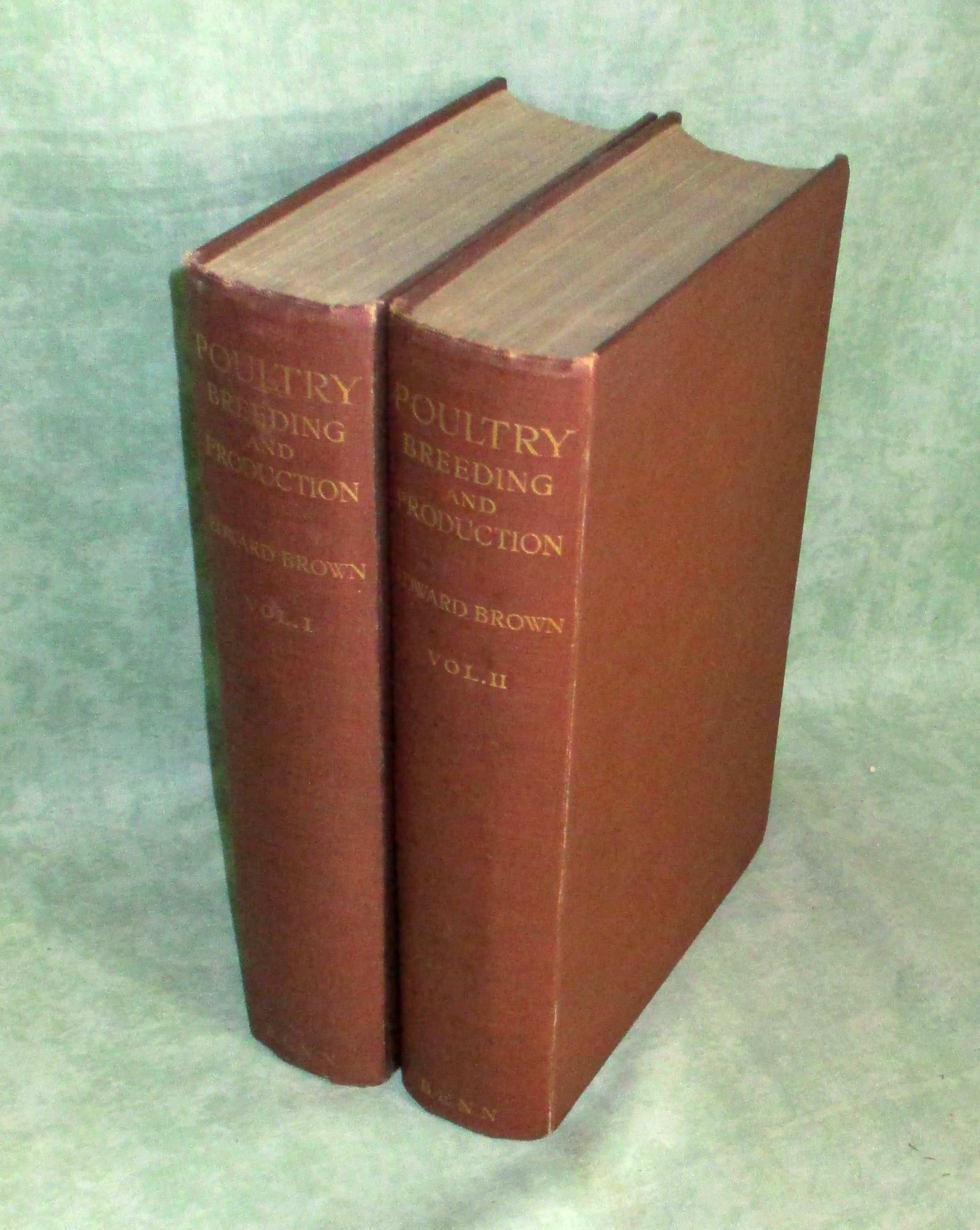 Stubenvögel-, Geflügel-, und Taubenliteratur Brown, Edward: Poultry. Breeding and Production. Vol. I: Races and breeding of domestic poultry. vol. II: The lines of development. London. Ernest Benn. 1929. 864 Seiten, 104 (8 farbige) Abb. Goldgepr. Leinen. In gutem Erhaltungzustand.