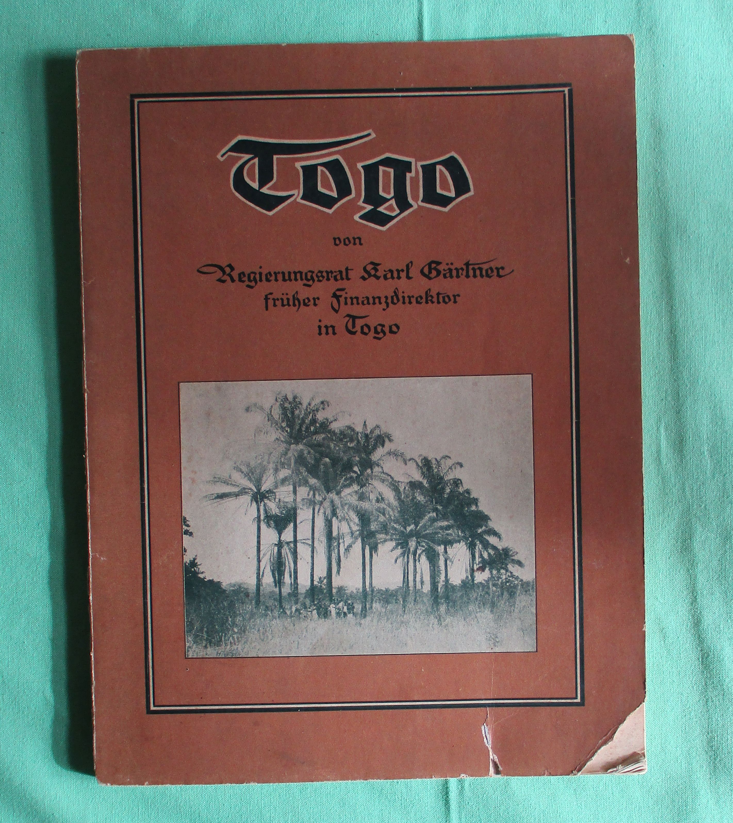Geschichte + Zeitgeschichte Gärtner, Karl: „Togo“. Finanztechnische Studie über die Entwicklung des Schutzgebietes unter deutscher Verwaltung ; Zum 40. Jahrestag deutscher Kolonialarbeit ; Mit einem Anhang über Erlebnisse des Verfassers in englischer Gefangenschaft. Darmstadt/Oppeln. Erdmann Raabe. 1924. gr. 8. 57 Seiten, mit einer (farbigen) Karte und zahlreichen Bildern. kart. Einband mit Eckabriss und Läsur. Innen sauber und anstreichungsfrei.