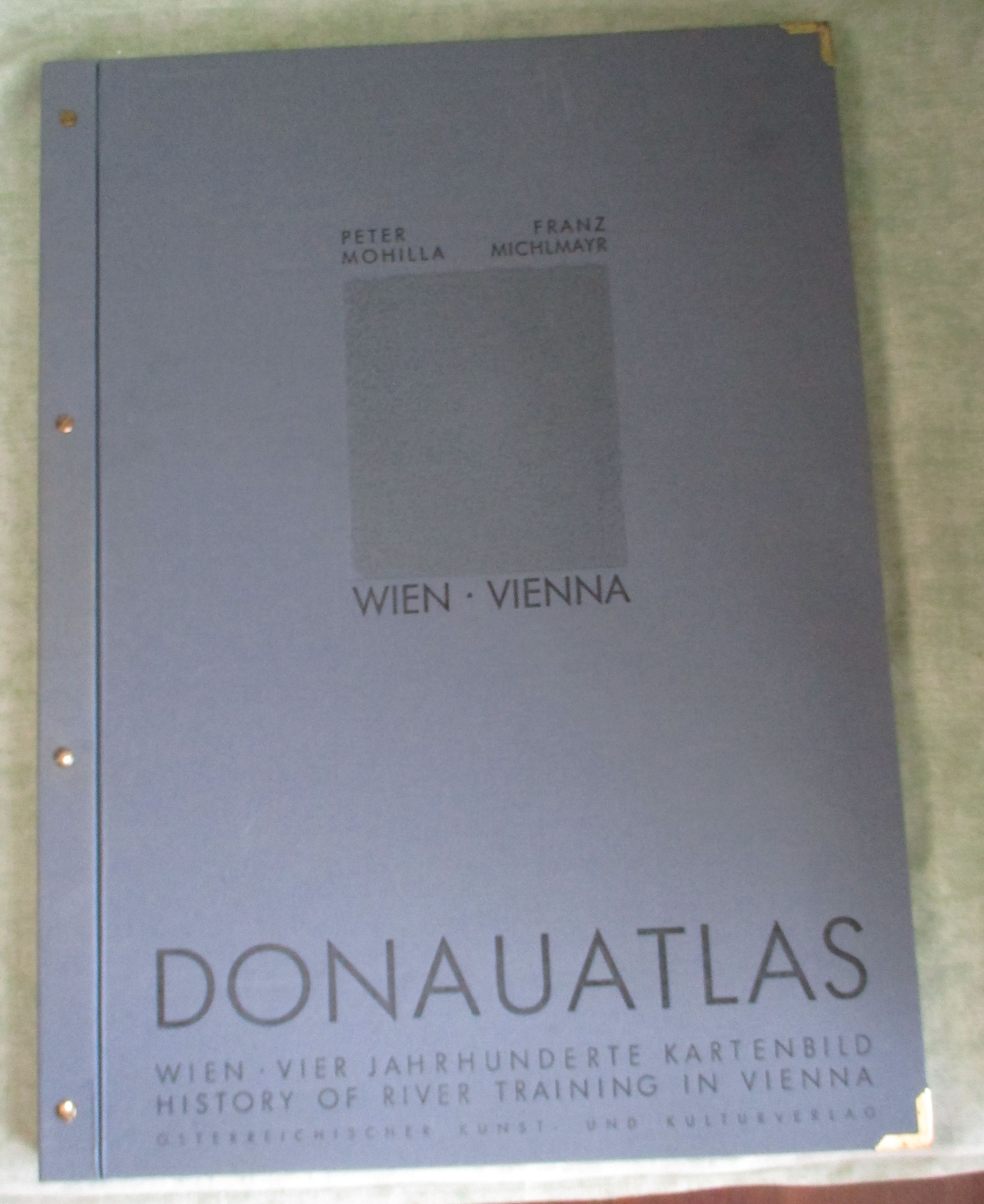 Wien – Landeskunde Mohilla, Peter / Michlmayr, Franz. Donauatlas Wien. Geschichte der Donauregulierung auf Karten und Plänen aus vier Jahrhunderten = Atlas of the Danube River Vienna.A History of River Training on Maps and Plans of four centuries. Wien, Österreichischer Kunst- und Kulturverlag. 1996. 45,5 x 61 cm. Leinen. Ecken mit Messing beschlagen. In sehr gutem Zustand. Äußerst umfangreiches und voluminöses Sammelwerk historischer Karten über die Donau bei Wien. Gewicht ca. 8 kg!