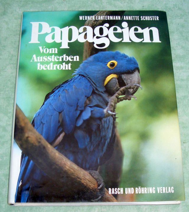 Ornithologie – Vogelkunde Lantermann, W./ Schuster, A. Papageien. Vom Aussterben bedroht. Hamburg. Rasch u. Röhring. 1990. 4°. 143 Seiten. 43 Farbfotos. Zahlr. Tabellen und Verbreitungskarten. Originalleinen. Mit Schutzumschlag. Gutes Ex.